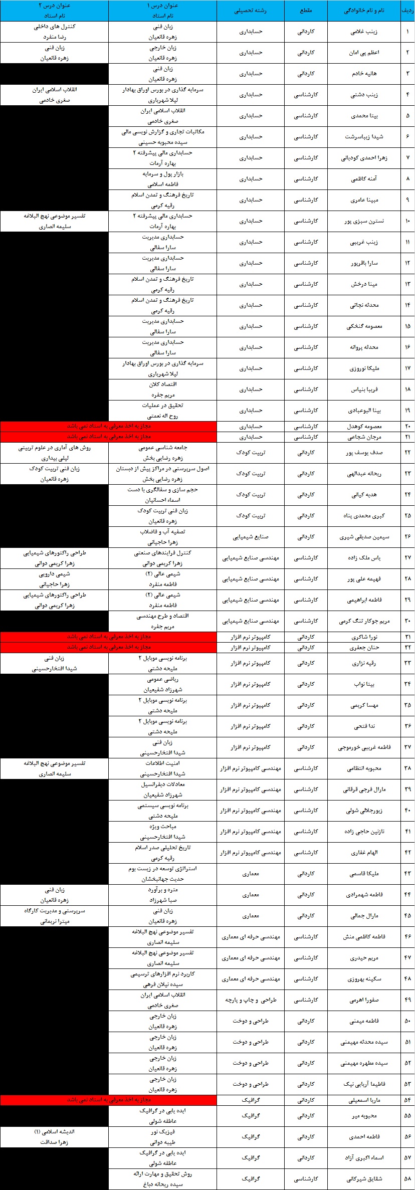اسامی دانشجویان شرکت کننده در فراخوان آزمون معرفی به استاد(تکدرس)