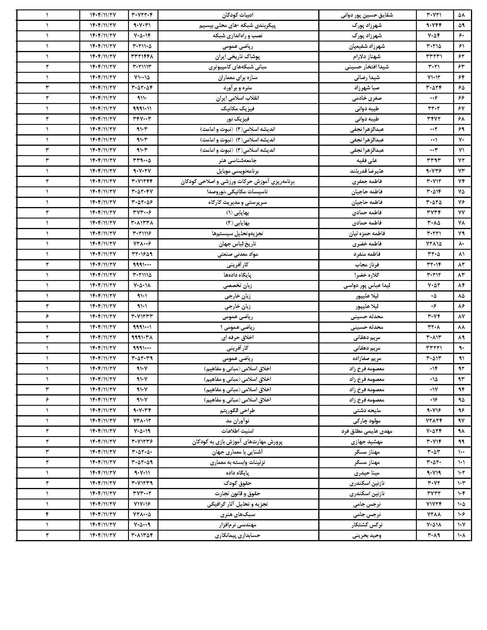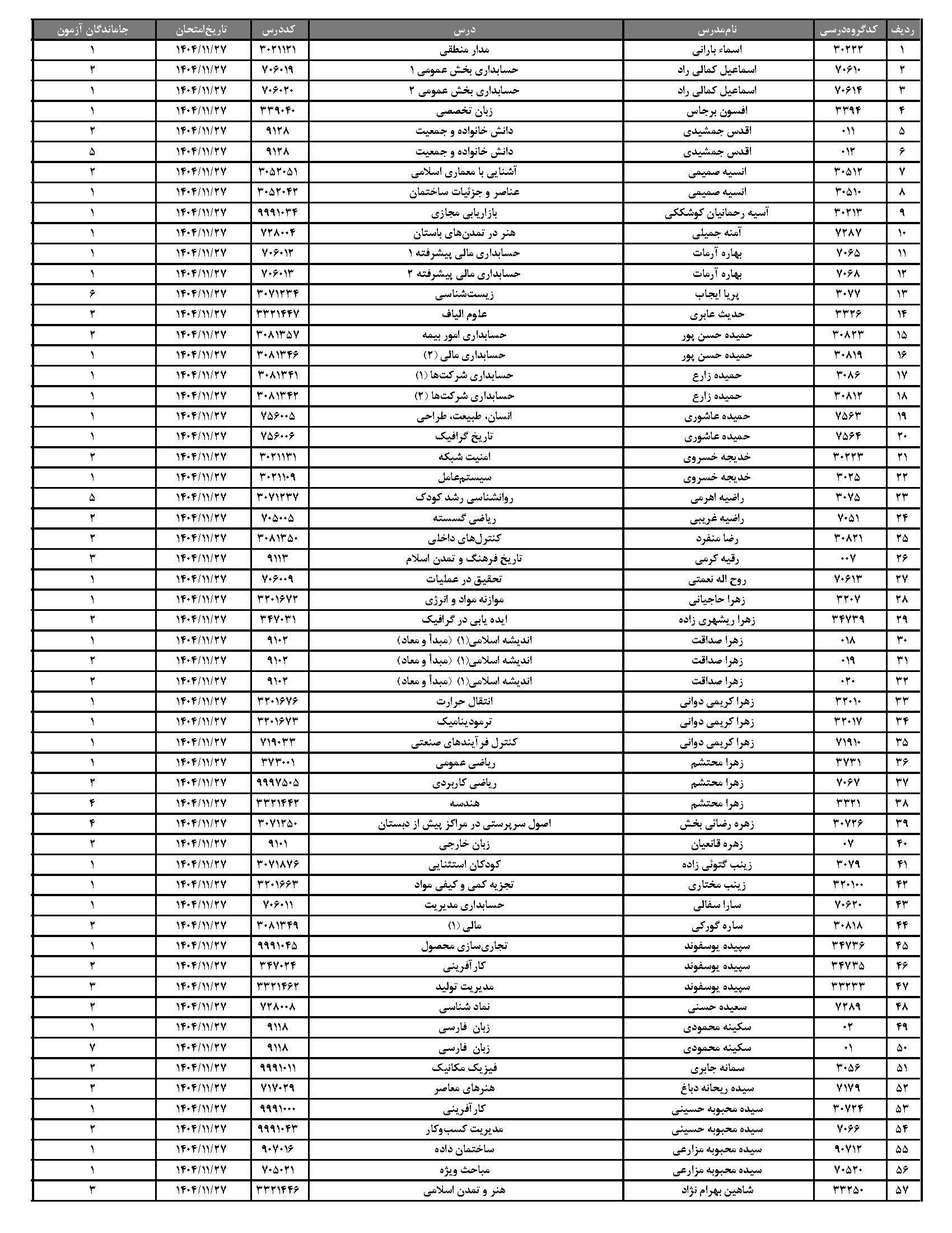 لیست دروس آزمون مجدد سمیاد