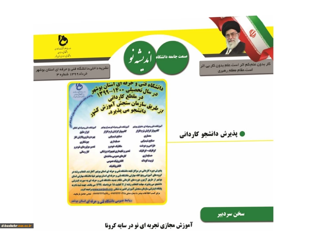 امتیاز دهید : نسخه الکترونیکی _ شماره ۳ نشریه اندیشه نو(گاهنامه)_دانشگاه فنی و حرفه ای استان بوشهر خرداد ماه ۱۳۹۹ 2 یکشنبه 11 خرداد 1399 ساعت 0:40