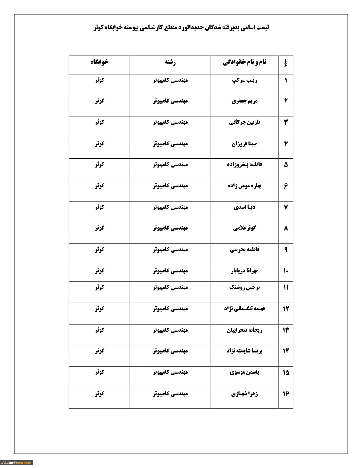 امتیاز دهید : اطلاعیه اسکان دانشجویان جدیدالورود خوابگاهی مقطع کارشناسی پیوسته آموزشکده دختران بوشهر 5 پنجشنبه 1 آبان 1404 ساعت 8:46