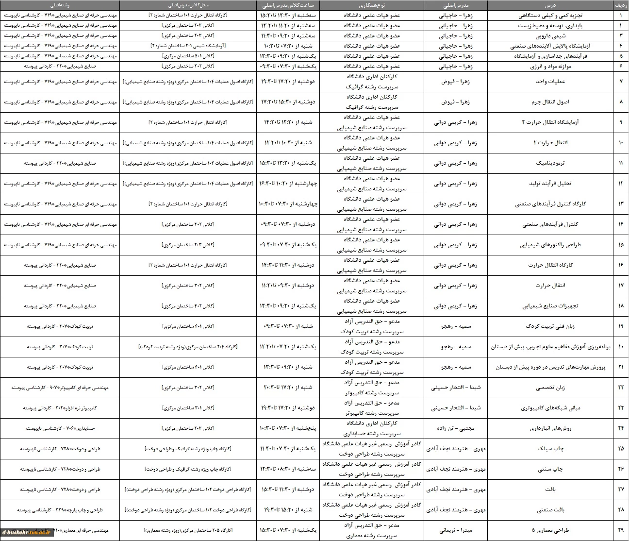 امتیاز دهید : برنامه هفتگی حضور مدرسان موظف (هیات علمی-مدرس-هنرآموز) و سرپرستان گروه آموزشکده ملی مهارت دختران بوشهر در نیمسال اول 405-1404 2 دوشنبه 16 آبان 1401 ساعت 19:14